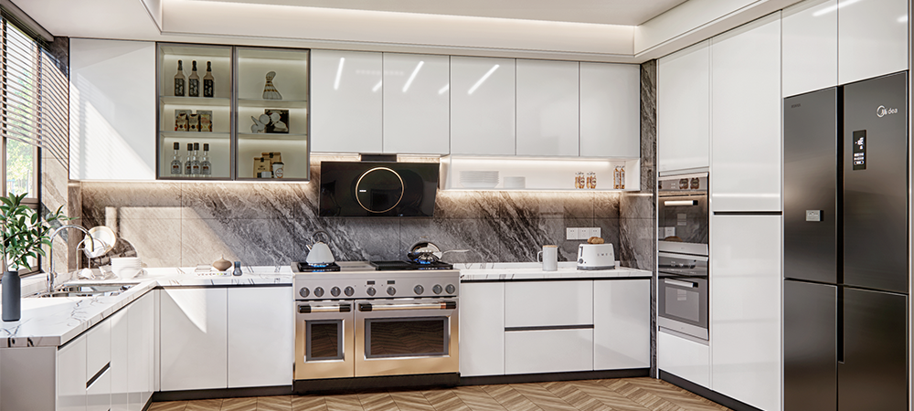 - Seamless Countertop Integration – Escada White + Ceramic White Countertops